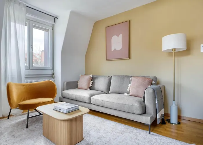 La résidence est situé dans le quartier "Wipkingen", à environ 2 km de la Église Liebfrauen. Le domicile de 80 m^2 est à côté de marche du Musée du design de Zurich.